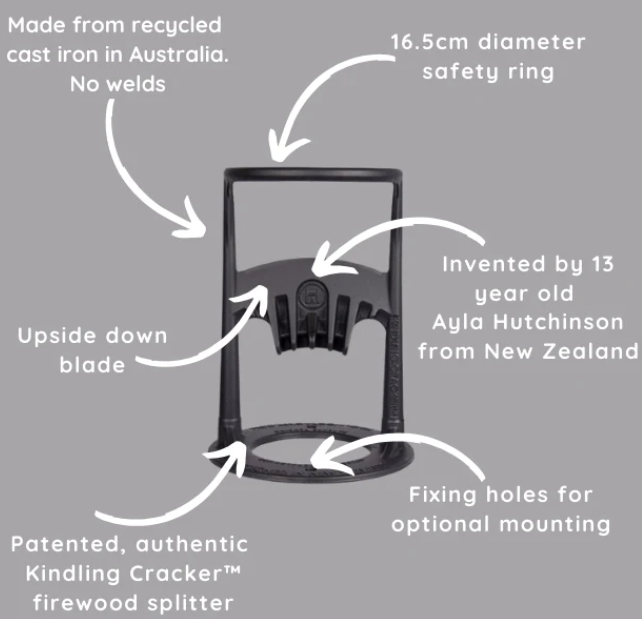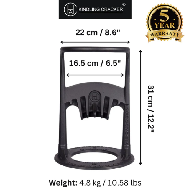Kindling Cracker Original: Fendeur de petit bois en fonte recyclée, conçu pour fendre le bois d’allumage en sécurité. Produit iconique, durable et adapté à la vente en magasin comme en ligne. Sélectionné par Cheminées La Romaine pour sa qualité, sa durabilité et sa simplicité d’utilisation.